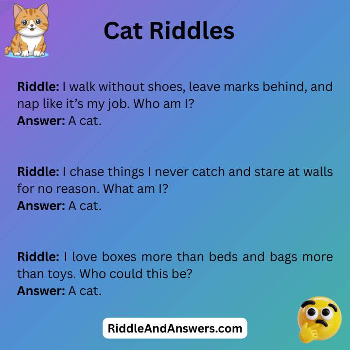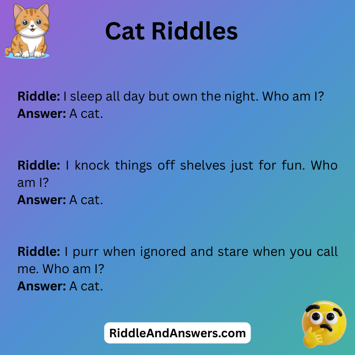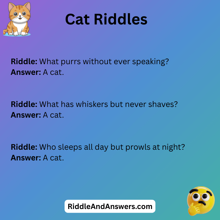 Cat riddles are a fun way to mix clever thinking with a love for our curious feline friends. This playful riddle asks a smart question that sounds confusing at first but has a simple and amusing answer. Perfect for cat lovers, kids, and riddle fans, these cat riddles bring smiles, laughs, and light brain exercise without being too hard.