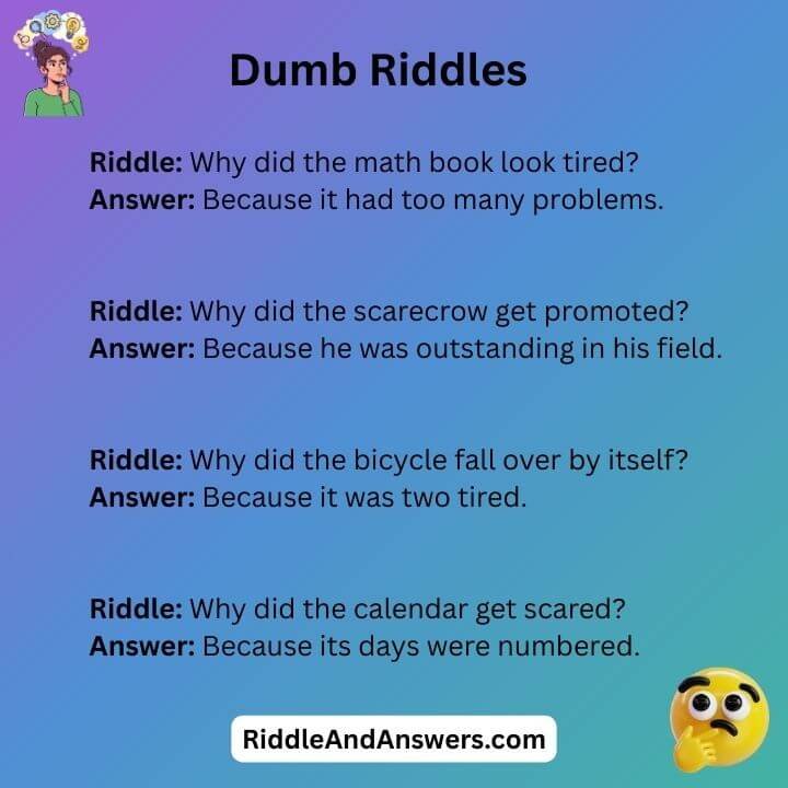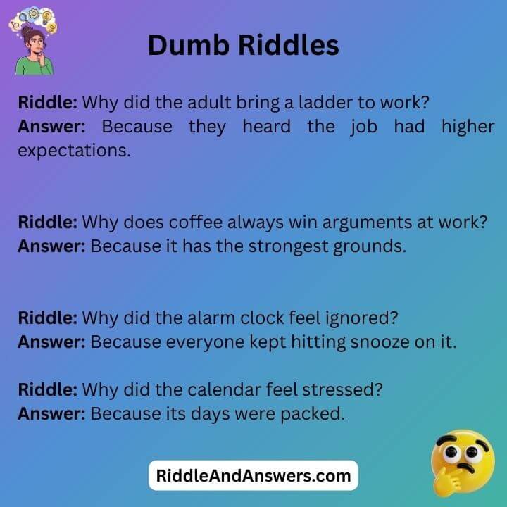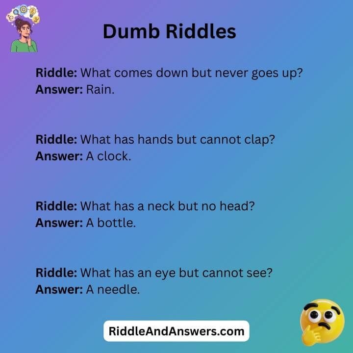 Dumb Riddles are fun because they are simple and silly. This riddle sounds confusing at first, but the answer is easy and funny. It’s made to make you smile.