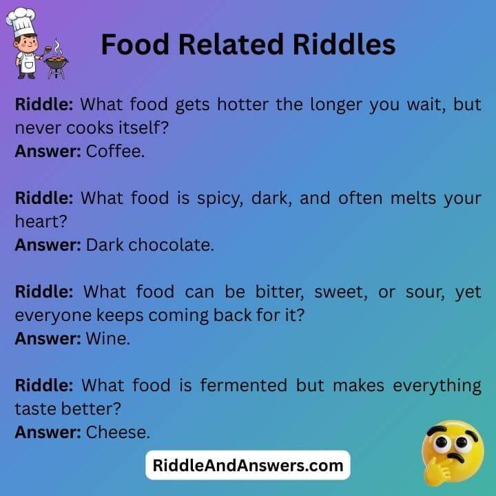 Food related riddles are fun puzzles that use food ideas to make you think. They mix simple clues with clever meanings that surprise you. Food Related Riddles: What Month Brings Heat but Melts Nothing? is about enjoying food-based brain games that are easy, playful, and enjoyable for everyone. These riddles are great for sharing laughs and testing your thinking skills.