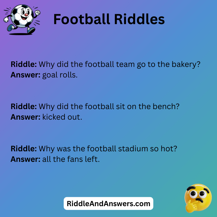 Football riddles are a fun way to challenge your brain while enjoying the excitement of the game. One of the most playful riddles asks, “What month brings heat but melts nothing?” These types of riddles combine the thrill of football with clever wordplay, making them perfect for fans of all ages. Whether you’re sharing them with friends, family, or teammates, football riddles can turn any game day into a fun guessing challenge.