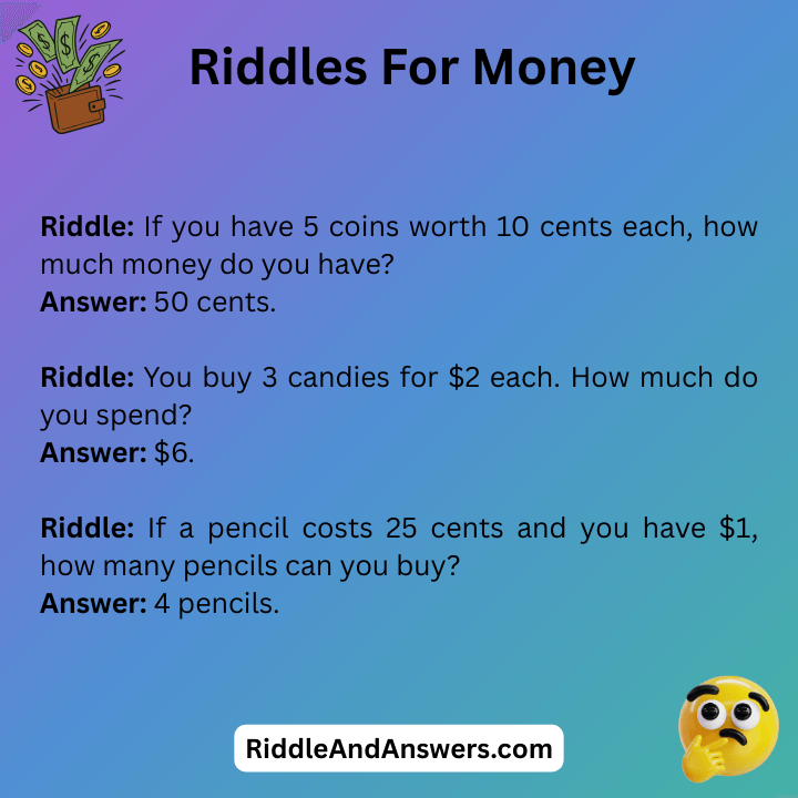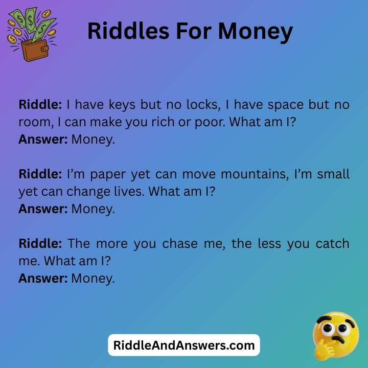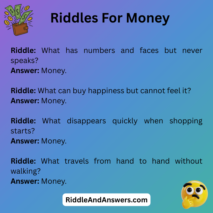 Money can be fun when mixed with riddles! They make you think, laugh, and test your brain. For example, the riddle “What month brings heat but melts nothing?” makes you think in a clever way. Enjoy these money riddles and see if you can solve them all.