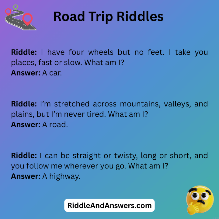 Take your road trip fun to the next level with our “Road Trip Riddles.” These puzzles are great for keeping everyone busy and laughing while driving. Here’s a tricky one: What month brings heat but melts nothing? It’s a fun way to make the ride more exciting!