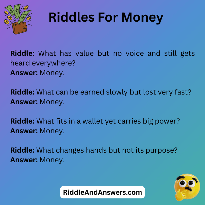 Money can be fun when mixed with riddles! They make you think, laugh, and test your brain. For example, the riddle “What month brings heat but melts nothing?” makes you think in a clever way. Enjoy these money riddles and see if you can solve them all.